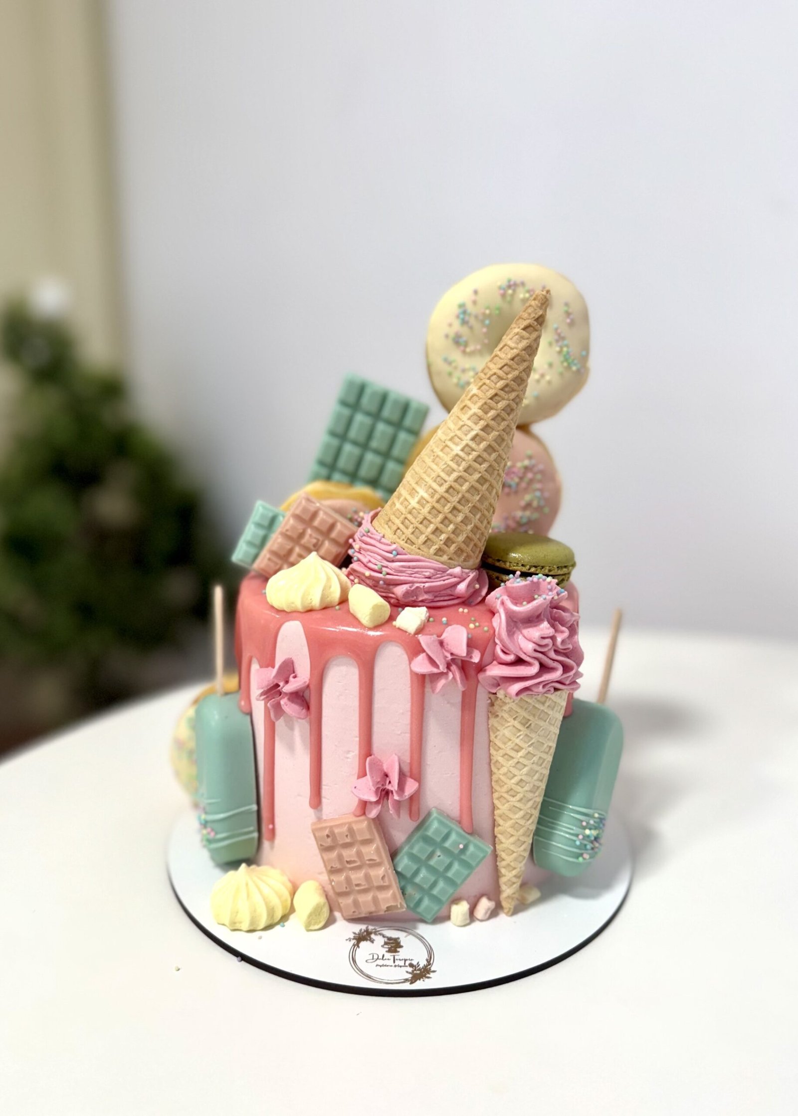 ¿Buscas un pastel que sea tan delicioso como visualmente impactante? Nuestro pastel con temática de helados y chuches es la opción perfecta para cualquier celebración. Este diseño único combina la dulzura clásica de los helados con la diversión de las chucherías, creando una experiencia inolvidable para todos los invitados. Además, puedes elegir el sabor que más te guste y personalizar los colores para que se adapten perfectamente a tu evento.