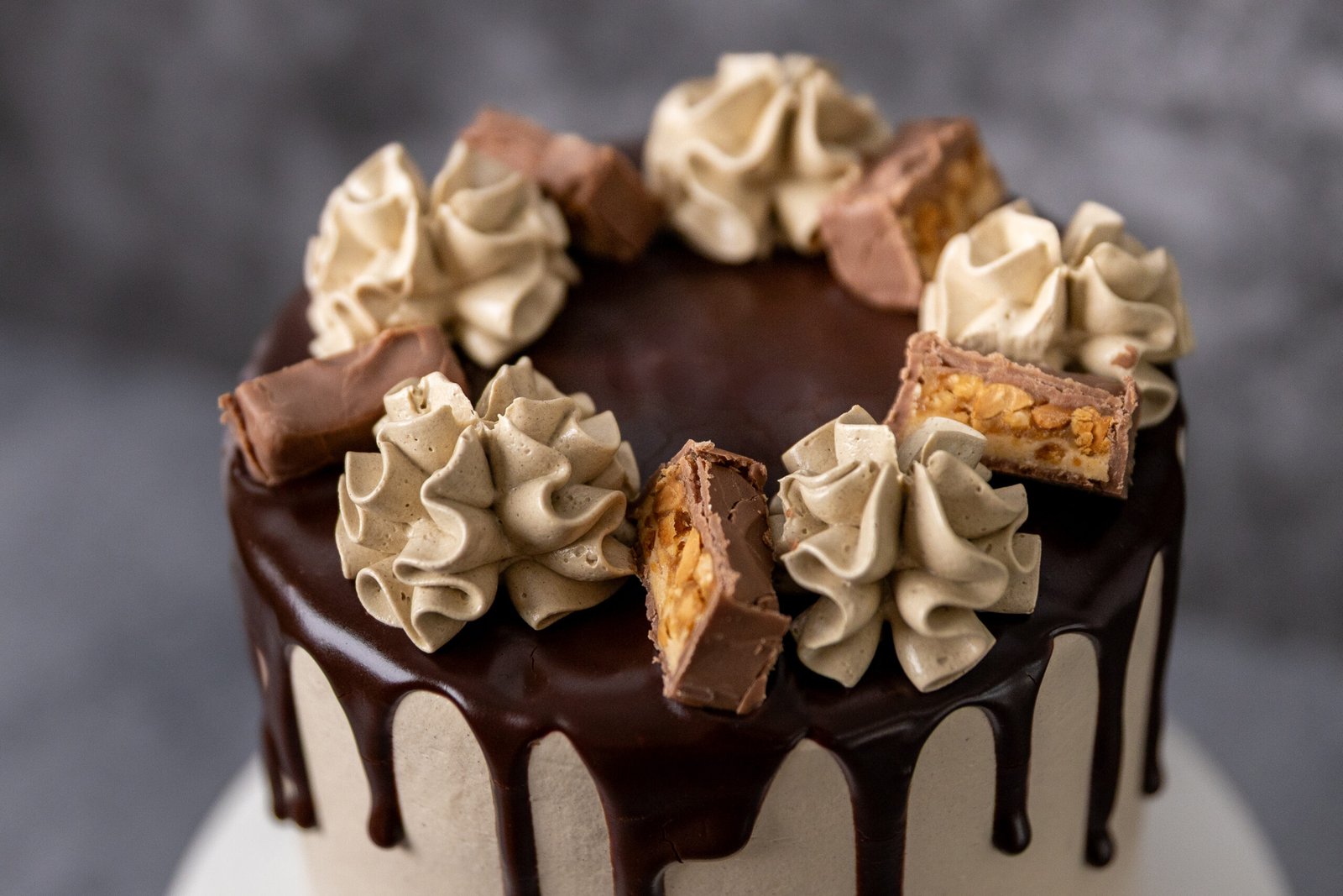 La tarta Snickers es la combinación perfecta de ingredientes para quienes aman el contraste entre lo dulce y lo salado. Este delicioso bizcocho de chocolate sirve como base para un relleno de crema de cacahuete, complementado con un generoso toque de caramelo y cacahuetes tostados.